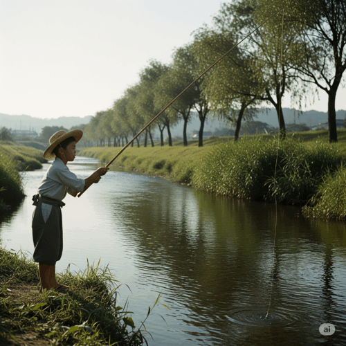 毎日、小学校に行く前に3時に起きて近くの川へ魚釣りに行くのが日課でした。夜明け前の薄明るくなってくるとハヤやフナの食いつきがよくなるので、釣りの面白さにハマっていたのかもしれません。